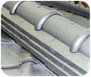 「ガイドライン工法」では、風が瓦屋根の表面に当たったときの外圧と、持ち上げようとする内圧を緻密に計算して施工します。 |